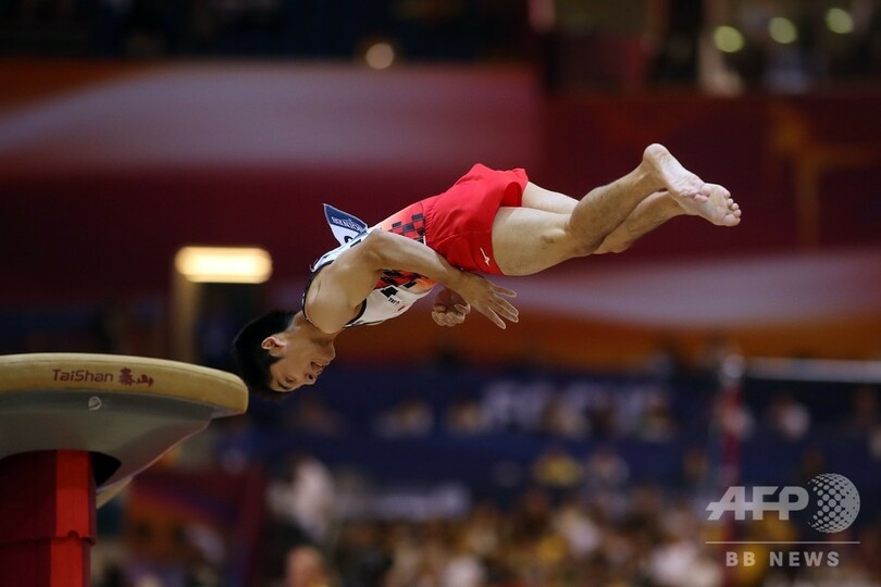 また、男子跳馬では、白井健三(Kenzo Shirai)が銅メダルを獲得している。(c)AFP