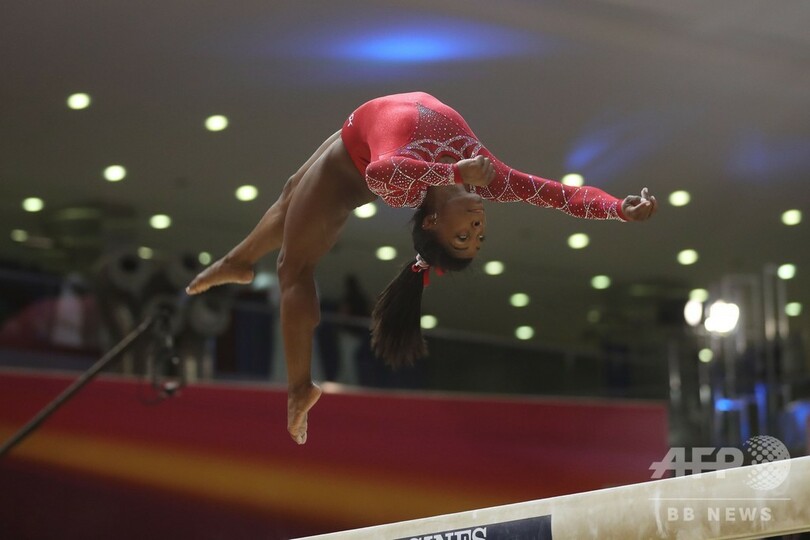 さらに最終日の2種目で表彰台入りを果たしたことで、バイルスは1987年大会のエレーナ・シュシュノワ(Yelena Shushunova)氏以来となる全種目でのメダル獲得を達成した。全6種目でのメダルは、米国の選手としては史上初めての快挙となった。(c)AFP/David HARDING