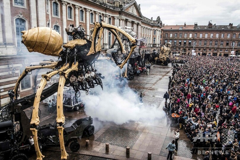 【11月4日 AFP】フランス南部トゥールーズ(Toulouse)で2日、牛の頭と人の体を持つギリシャ神話の怪物ミノタウロス「アステリオン(Asterion)」と、巨大なクモの「アリアーヌ(Ariane)」(ギリシャ神話の「アリアドネ」)が市庁舎前広場に現れた。