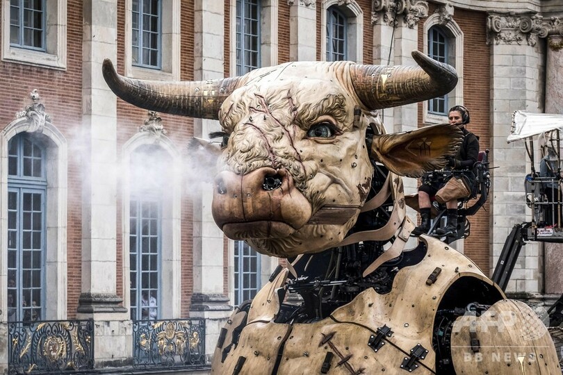 【11月4日 AFP】フランス南部トゥールーズ(Toulouse)で2日、牛の頭と人の体を持つギリシャ神話の怪物ミノタウロス「アステリオン(Asterion)」と、巨大なクモの「アリアーヌ(Ariane)」(ギリシャ神話の「アリアドネ」)が市庁舎前広場に現れた。