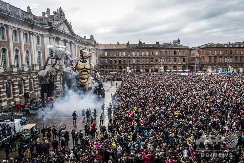 【11月4日 AFP】フランス南部トゥールーズ(Toulouse)で2日、牛の頭と人の体を持つギリシャ神話の怪物ミノタウロス「アステリオン(Asterion)」と、巨大なクモの「アリアーヌ(Ariane)」(ギリシャ神話の「アリアドネ」)が市庁舎前広場に現れた。