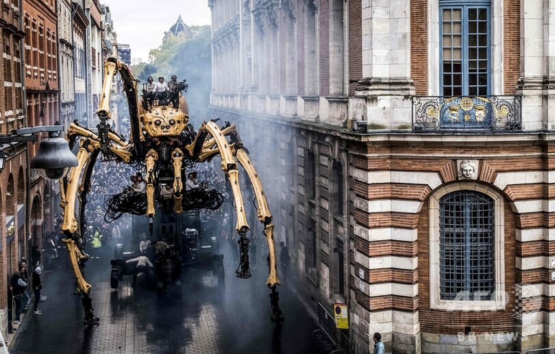 【11月4日 AFP】フランス南部トゥールーズ(Toulouse)で2日、牛の頭と人の体を持つギリシャ神話の怪物ミノタウロス「アステリオン(Asterion)」と、巨大なクモの「アリアーヌ(Ariane)」(ギリシャ神話の「アリアドネ」)が市庁舎前広場に現れた。