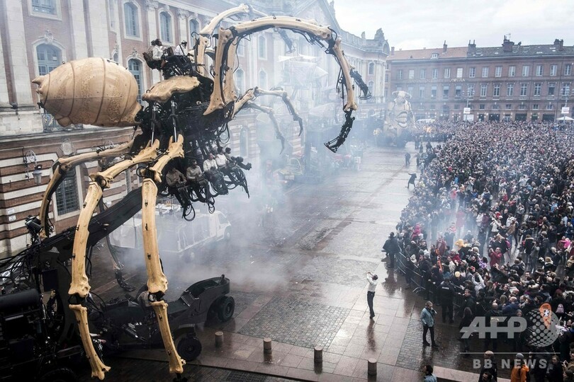 【11月4日 AFP】フランス南部トゥールーズ(Toulouse)で2日、牛の頭と人の体を持つギリシャ神話の怪物ミノタウロス「アステリオン(Asterion)」と、巨大なクモの「アリアーヌ(Ariane)」(ギリシャ神話の「アリアドネ」)が市庁舎前広場に現れた。