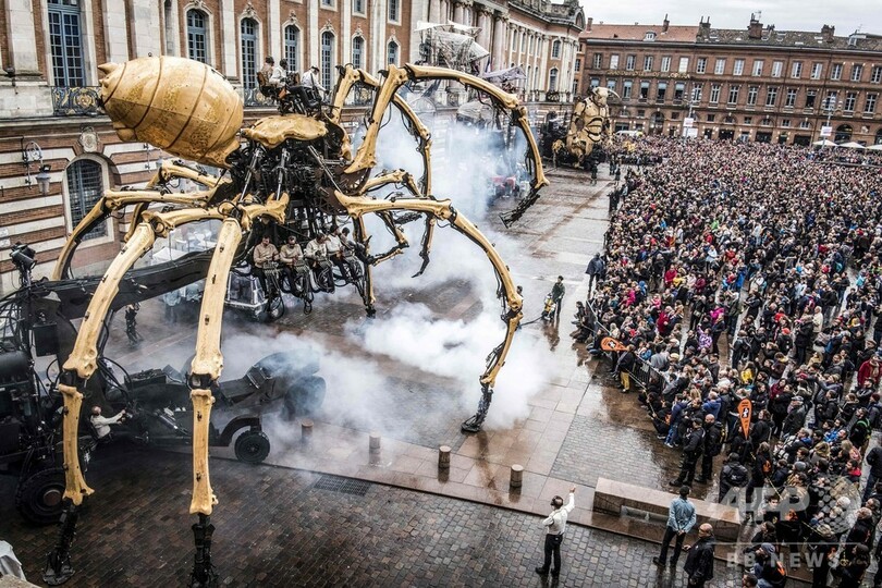 【11月4日 AFP】フランス南部トゥールーズ(Toulouse)で2日、牛の頭と人の体を持つギリシャ神話の怪物ミノタウロス「アステリオン(Asterion)」と、巨大なクモの「アリアーヌ(Ariane)」(ギリシャ神話の「アリアドネ」)が市庁舎前広場に現れた。