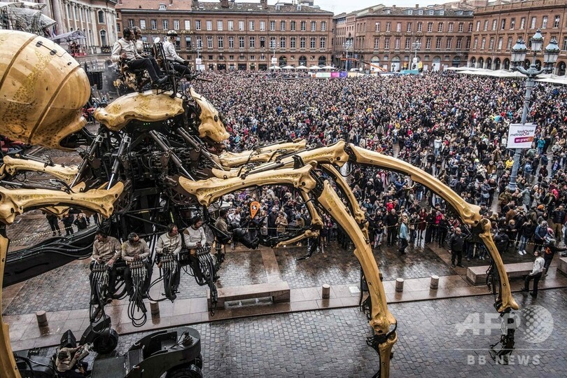 【11月4日 AFP】フランス南部トゥールーズ(Toulouse)で2日、牛の頭と人の体を持つギリシャ神話の怪物ミノタウロス「アステリオン(Asterion)」と、巨大なクモの「アリアーヌ(Ariane)」(ギリシャ神話の「アリアドネ」)が市庁舎前広場に現れた。