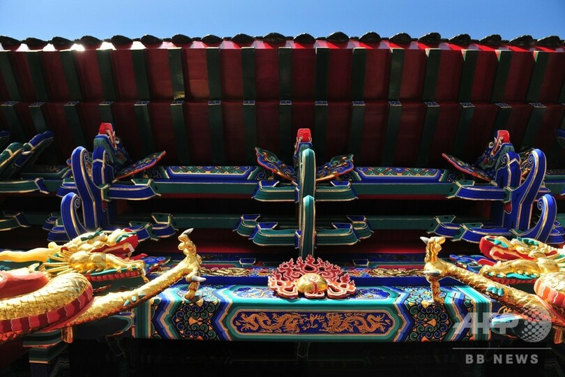 【11月13日 CNS】中国・遼寧省(Liaoning)瀋陽(Shenyang)にある瀋陽故宮博物院(The Shenyang Palace Museum)内にある大政殿(Dazhengdian)の金箔の貼り換え工程など、博物院にある歴史的建造物の装飾画の修復・保護作業がすべて終了した。(c)CNS/JCM/AFPBB News