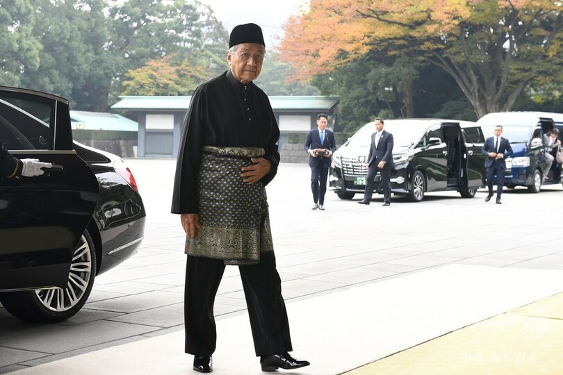 【11月6日 AFP】来日中のマレーシアのマハティール・モハマド(Mahathir Mohamad)首相は6日、皇居で行われた大綬章親授式に出席し、天皇陛下(Emperor Akihito)から桐花大綬章(Grand Cordon of the Order of the Paulownia Flowers)を手渡された。