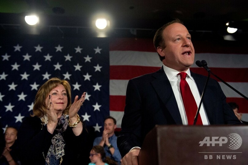 【11月7日 AFP】(写真追加)米ABCとNBCは6日、コロラド州の州知事選で民主党候補のジャレッド・ポリス(Jared Polis)氏が共和党候補のウォーカー・ステイプルトン(Walker Stapleton)氏を破り、当選確実であると報じた。ポリス氏は同性愛者であることを公表している人物として米国で初めて州知事に就任する。