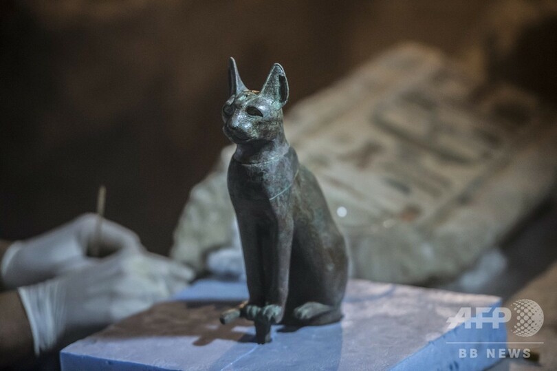 さらに、古代エジプトの猫の女神バステト(Bastet)にささげられた、金メッキを施された木像100体や銅像と共に猫のミイラ数十体が発掘された。
