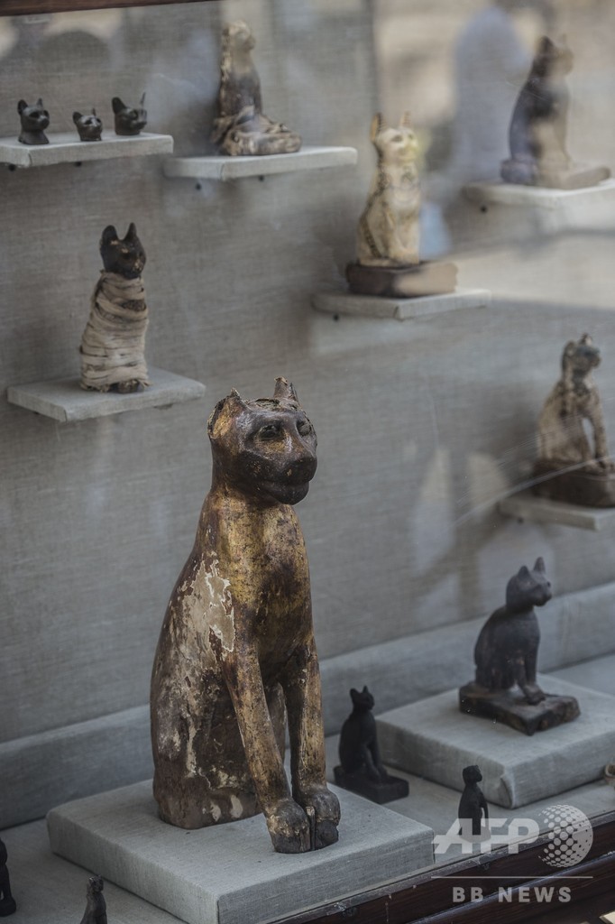 さらに、古代エジプトの猫の女神バステト(Bastet)にささげられた、金メッキを施された木像100体や銅像と共に猫のミイラ数十体が発掘された。
