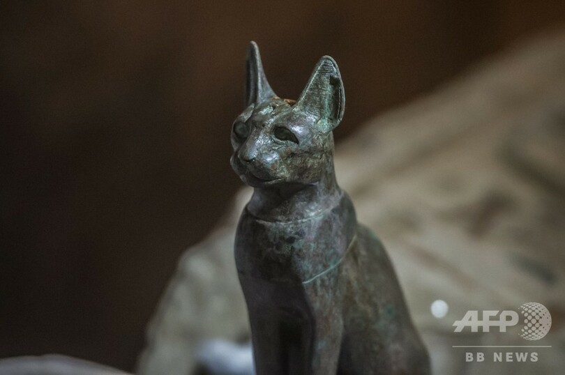 さらに、古代エジプトの猫の女神バステト(Bastet)にささげられた、金メッキを施された木像100体や銅像と共に猫のミイラ数十体が発掘された。
