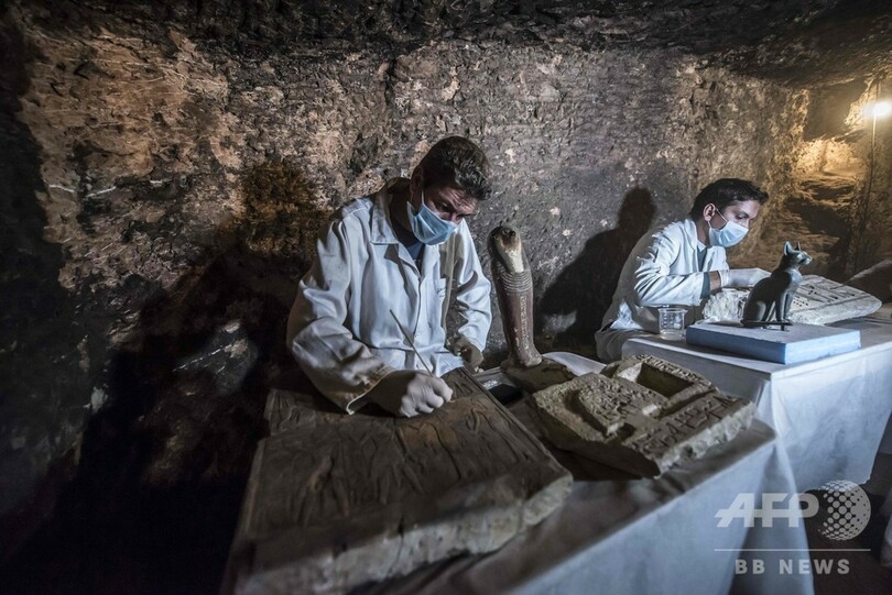 猫のミイラや銅像など発見、エジプト古代都市サッカラの遺跡