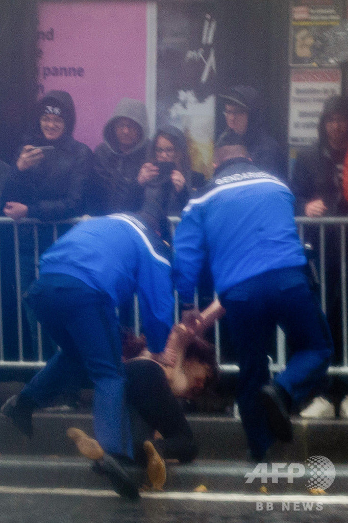 テレビ中継された映像によると、女性活動家の1人は後方の車列から数メートルの距離まで近づいたところを警察官に取り押さえられ、もう1人はシャンゼリゼ通りの道路脇で警備隊員に連行されていった。