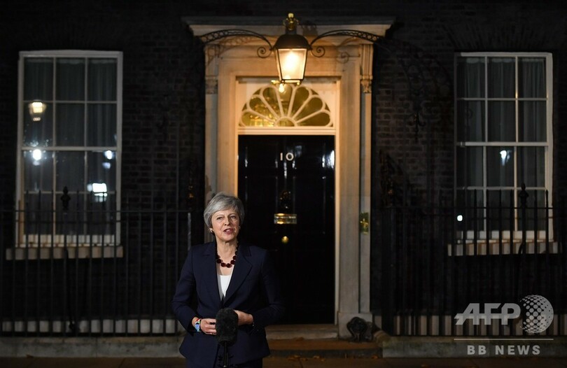 テリーザ・メイ(Theresa May)首相は、5時間以上に及んだ閣議の終了後、首相官邸前で会見し、「内閣は政府が離脱協定案と政治宣言の概要に同意すべきという共同決定を下した」と述べた。(c)AFP