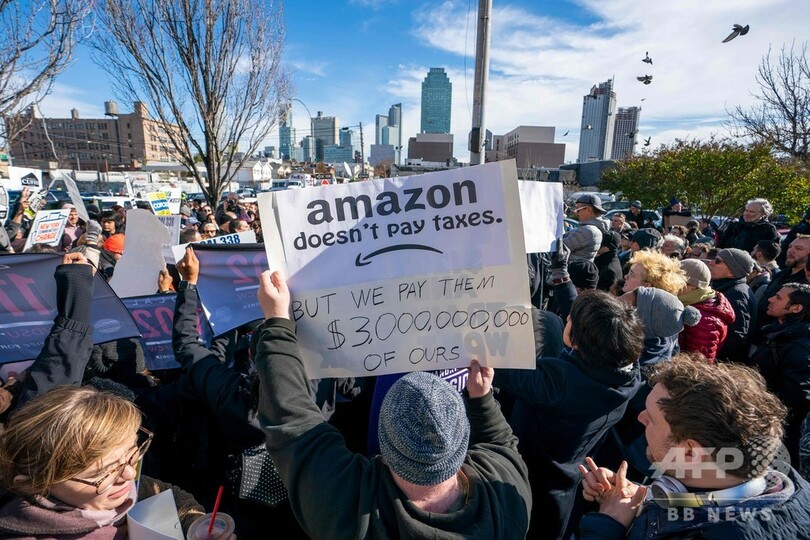 【11月15日 AFP】インターネット通販最大手の米アマゾン・ドットコム(Amazon.com)が第2本社をニューヨークと首都ワシントン郊外の2か所に分割して建設すると発表したことを受け、ニューヨーク市クイーンズ(Queens)地区で14日、100人近くの人が同社の本社建設に抗議するデモを行った。ニューヨーク市当局者によると、同社の誘致をめぐっては市側が30億ドル(約3400億円)近い税制優遇措置を持ち掛けたといい、デモ参加者たちからは地域の高級化による居住者の追い出しにつながりかねないとの批判の声が上がった。