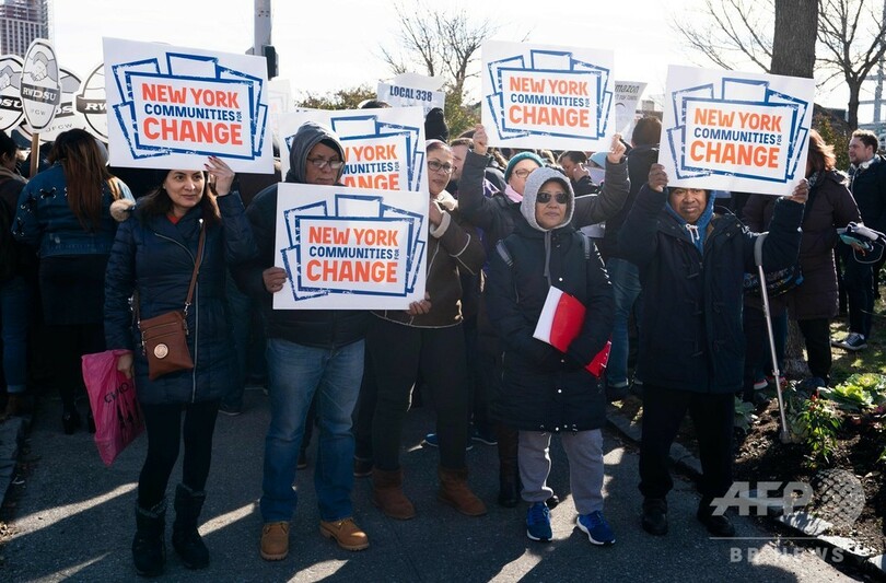 【11月15日 AFP】インターネット通販最大手の米アマゾン・ドットコム(Amazon.com)が第2本社をニューヨークと首都ワシントン郊外の2か所に分割して建設すると発表したことを受け、ニューヨーク市クイーンズ(Queens)地区で14日、100人近くの人が同社の本社建設に抗議するデモを行った。ニューヨーク市当局者によると、同社の誘致をめぐっては市側が30億ドル(約3400億円)近い税制優遇措置を持ち掛けたといい、デモ参加者たちからは地域の高級化による居住者の追い出しにつながりかねないとの批判の声が上がった。