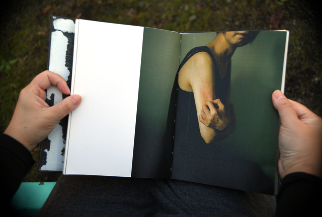 全184ページ。「ダミーブック」と呼ばれる手作り本の表現方法で、各ページをのりで貼り合わせ、背を糸でかがっている。読み進む覚悟のある人だけがページをめくればいいように、両開きの写真ページの中にそれぞれのエピソードが記されている。