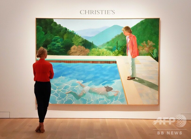 落札されたのはホックニー氏が1972年に制作した代表作「芸術家の肖像画―プールと2人の人物―(Portrait of an Artist (Pool with Two Figures))」。クリスティーズによると「現代の最高傑作の一つ」で、予想落札価格は8000万ドル(約90億円)だった。競売では2人の電話入札者が9分以上にわたり、入札合戦を繰り広げた。