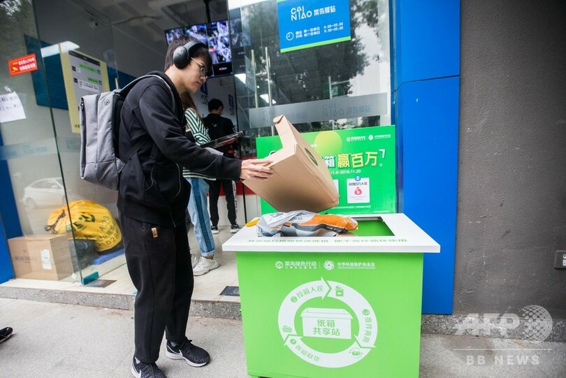 また、阿里巴巴(アリババ、Alibaba)傘下の物流会社菜鳥網絡(Cainiao Network)が提供する、ネット通販利用者のために商品を一時的に預かる荷物受託所の菜鳥驛站(Cainiao Yizhan)では、梱包に使われたダンボールを回収する「回収箱」を設置。浙江省(Zhejiang)杭州市(Hangzhou)の浙江大学(Zhejiang University)城市学院内に設置された菜鳥驛站の回収箱には、学生が回収箱にダンボールなど投入するなど積極的にリサイクル活動に参加していた。