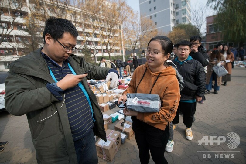中国各地の大学で荷物山積み、学生は行列して受け取り 「独身の日」余波