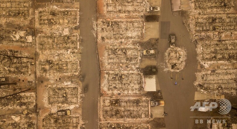 シエラネバダ(Sierra Nevada)山脈の麓に位置する同州北部の町、パラダイス(Paradise)では約1万軒の家屋が焼失した。ドナルド・トランプ(Donald Trump)米大統領は17日に同州を訪問し被災者を見舞う予定になっている。(c)AFP/Javier TOVAR