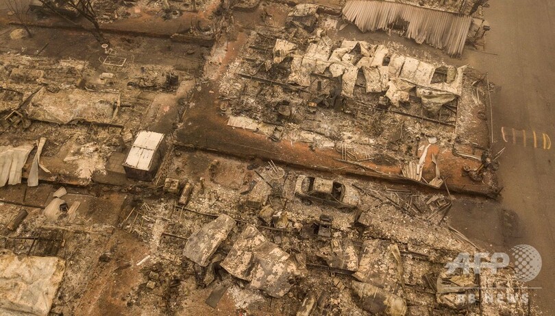 シエラネバダ(Sierra Nevada)山脈の麓に位置する同州北部の町、パラダイス(Paradise)では約1万軒の家屋が焼失した。ドナルド・トランプ(Donald Trump)米大統領は17日に同州を訪問し被災者を見舞う予定になっている。(c)AFP/Javier TOVAR