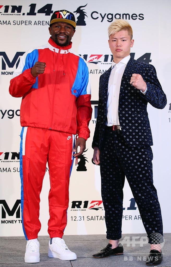 【11月18日 AFP】大みそかにさいたまスーパーアリーナ(Saitama Super Arena)で行われるボクシングの元世界王者フロイド・メイウェザー・ジュニア(Floyd Mayweather Jr.、米国)とキックボクサーの那須川天心(Tenshin Nasukawa)の試合について、主催する総合格闘技団体RIZINの榊原信行(Nobuyuki Sakakibara)実行委員長は17日、エキシビションマッチになるとしながらも、両者ともKOを狙いに行くはずだと話した。