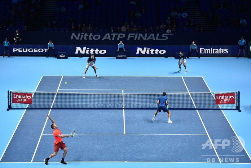【11月19日 AFP】男子テニス、ATPワールドツアー・ファイナルズ(ATP World Tour Finals 2018)は18日、最終日が行われ、ダブルス決勝では大会第5シードのマイク・ブライアン(Mike Bryan、米国)/ジャック・ソック(Jack Sock、米国)組が第8シードのピエール・ユーグ・エルベール(Pierre-Hugues Herbert、フランス)/ニコラ・マウー(Nicolas Mahut、フランス)組に5-7、6-1、13-11で逆転勝利を収め、優勝を飾った。