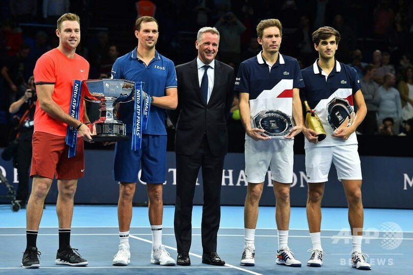 【11月19日 AFP】男子テニス、ATPワールドツアー・ファイナルズ(ATP World Tour Finals 2018)は18日、最終日が行われ、ダブルス決勝では大会第5シードのマイク・ブライアン(Mike Bryan、米国)/ジャック・ソック(Jack Sock、米国)組が第8シードのピエール・ユーグ・エルベール(Pierre-Hugues Herbert、フランス)/ニコラ・マウー(Nicolas Mahut、フランス)組に5-7、6-1、13-11で逆転勝利を収め、優勝を飾った。