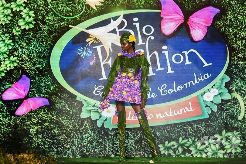 【11月19日 AFP】コロンビア・バジェデルカウカ(Valle del Cauca)州カリ(Cali)で17日、オーガニック素材を使ったドレスのファッションショー「バイオファッションショー(BioFashion Show)」が開催された。天然資源の保護・管理についての意識向上を目的とした環境的取り組みで、新人デザイナーらが生花などの植物やオーガニック素材を使ったドレスを制作している。(c)AFP