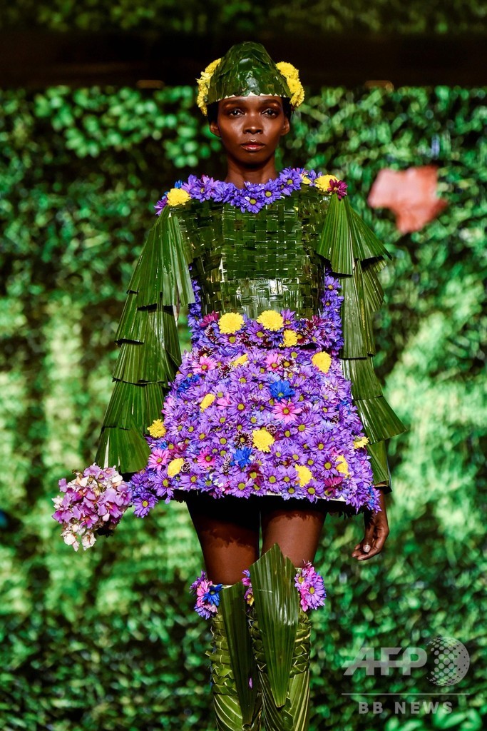 【11月19日 AFP】コロンビア・バジェデルカウカ(Valle del Cauca)州カリ(Cali)で17日、オーガニック素材を使ったドレスのファッションショー「バイオファッションショー(BioFashion Show)」が開催された。天然資源の保護・管理についての意識向上を目的とした環境的取り組みで、新人デザイナーらが生花などの植物やオーガニック素材を使ったドレスを制作している。(c)AFP