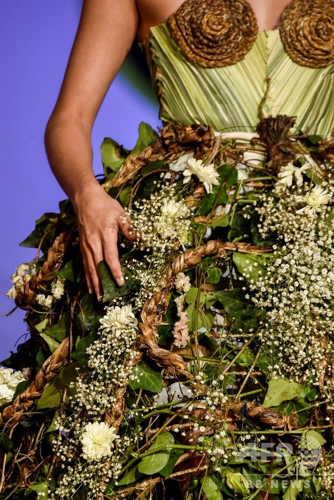 【11月19日 AFP】コロンビア・バジェデルカウカ(Valle del Cauca)州カリ(Cali)で17日、オーガニック素材を使ったドレスのファッションショー「バイオファッションショー(BioFashion Show)」が開催された。天然資源の保護・管理についての意識向上を目的とした環境的取り組みで、新人デザイナーらが生花などの植物やオーガニック素材を使ったドレスを制作している。(c)AFP
