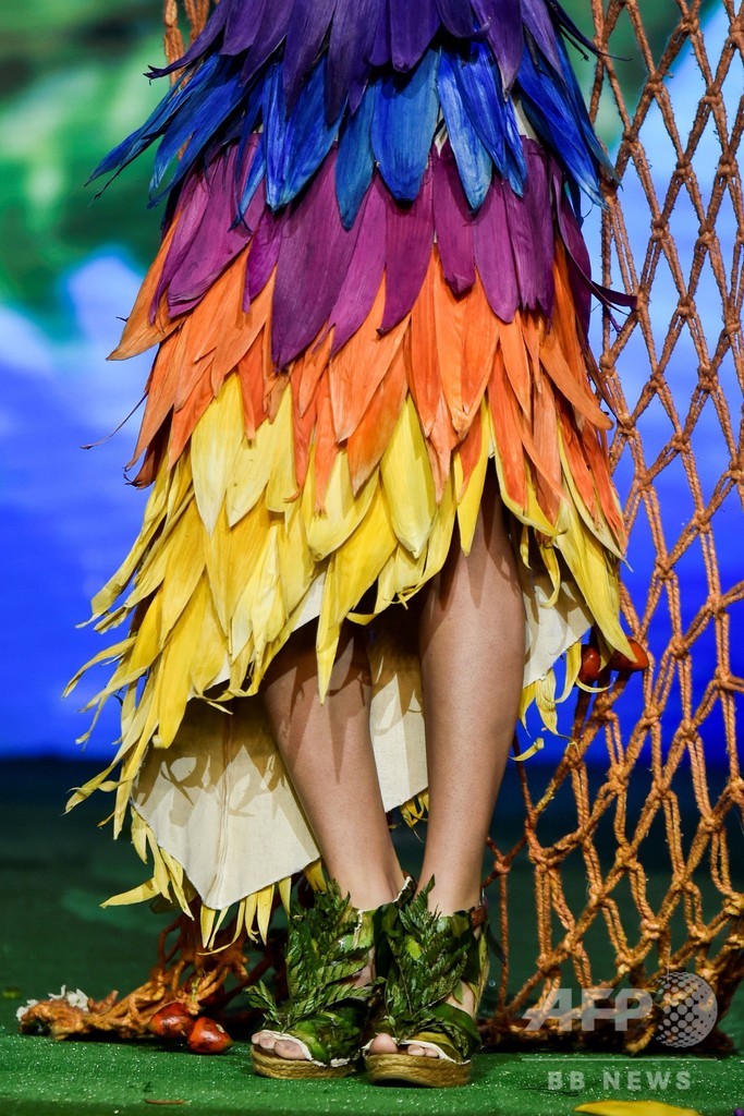 【11月19日 AFP】コロンビア・バジェデルカウカ(Valle del Cauca)州カリ(Cali)で17日、オーガニック素材を使ったドレスのファッションショー「バイオファッションショー(BioFashion Show)」が開催された。天然資源の保護・管理についての意識向上を目的とした環境的取り組みで、新人デザイナーらが生花などの植物やオーガニック素材を使ったドレスを制作している。(c)AFP