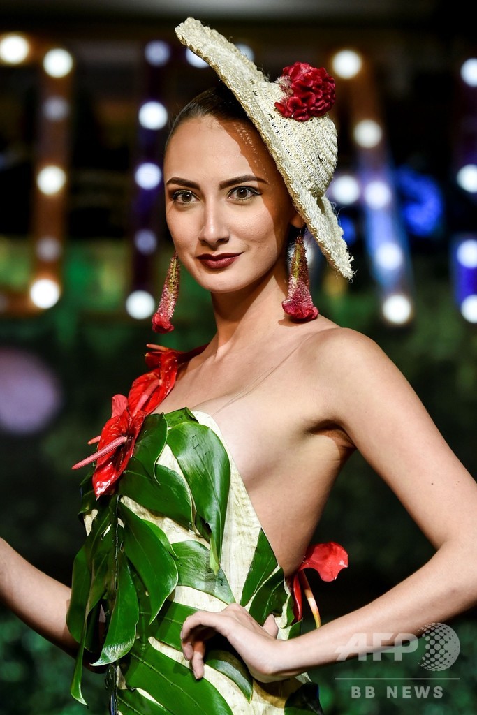 【11月19日 AFP】コロンビア・バジェデルカウカ(Valle del Cauca)州カリ(Cali)で17日、オーガニック素材を使ったドレスのファッションショー「バイオファッションショー(BioFashion Show)」が開催された。天然資源の保護・管理についての意識向上を目的とした環境的取り組みで、新人デザイナーらが生花などの植物やオーガニック素材を使ったドレスを制作している。(c)AFP