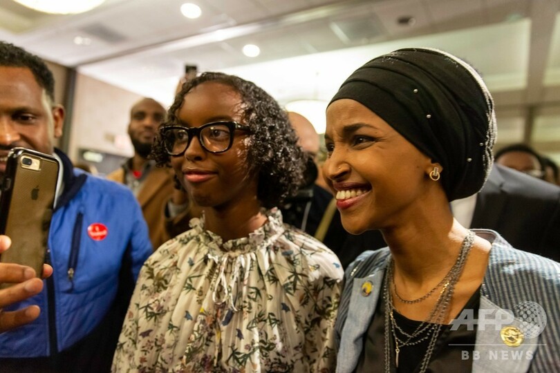 元ソマリア難民のオマル氏は、今月行われた米中間選挙でミネソタ州から下院議員に当選。ミシガン州の下院選で当選した女性とともに、全米初のイスラム教徒女性の下院議員になる。(c)AFP