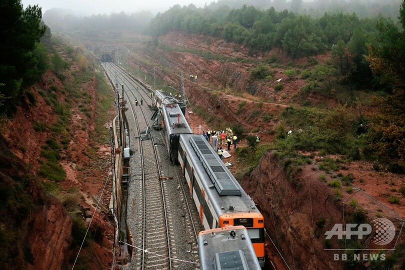 【11月20日 AFP】スペインのバルセロナ(Barcelona)近郊で20日、通勤列車が脱線して1人が死亡、44人が負傷し、うち3人が重傷を負った。救急当局と運行会社が発表した。脱線の原因は、豪雨による土砂崩れだという。
