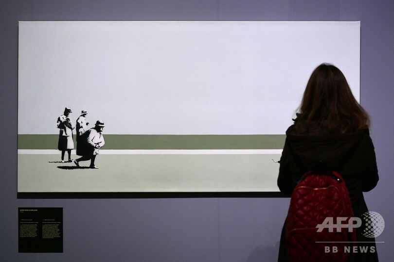 今回の個展は、バンクシーの許可を得ずに行われている。メルクーリオ氏は20日、AFPの取材に対し、「(展示会の準備は)非常に難しかった。まるで幽霊と働いているようだった」と語った。同氏によると、「学術寄りのアプローチ」をしているという。