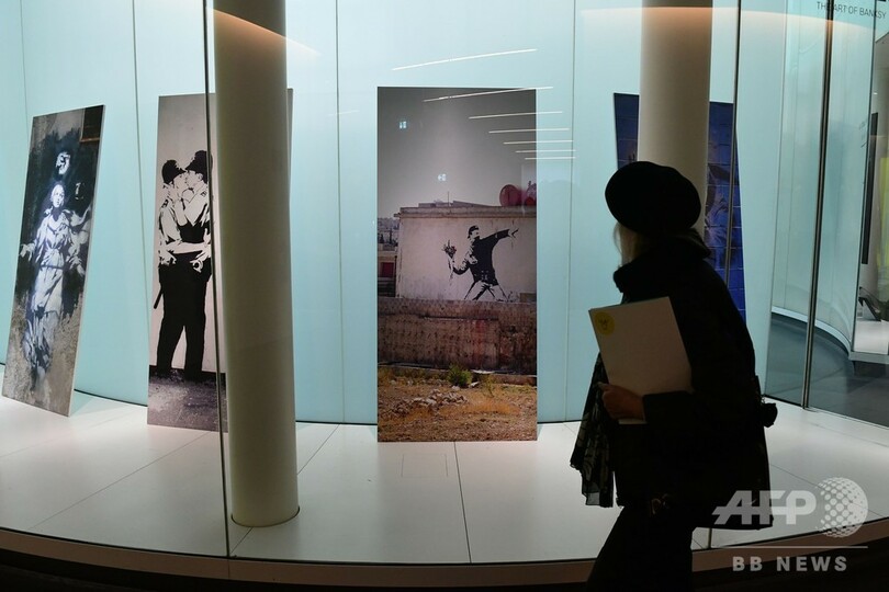 今回の個展は、バンクシーの許可を得ずに行われている。メルクーリオ氏は20日、AFPの取材に対し、「(展示会の準備は)非常に難しかった。まるで幽霊と働いているようだった」と語った。同氏によると、「学術寄りのアプローチ」をしているという。