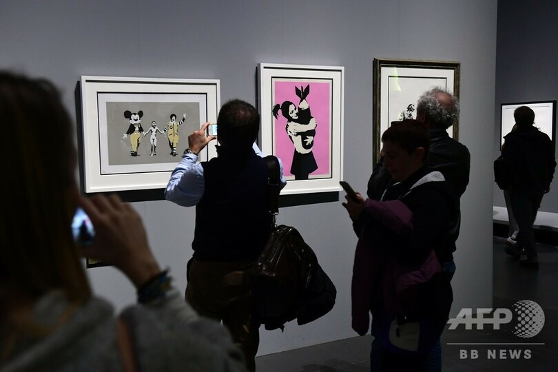 今回の個展は、バンクシーの許可を得ずに行われている。メルクーリオ氏は20日、AFPの取材に対し、「(展示会の準備は)非常に難しかった。まるで幽霊と働いているようだった」と語った。同氏によると、「学術寄りのアプローチ」をしているという。