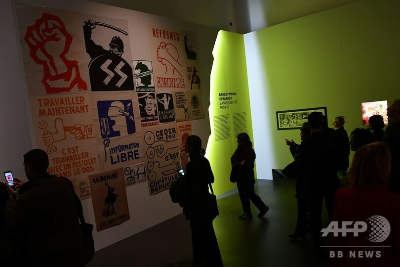 今回の個展は、バンクシーの許可を得ずに行われている。メルクーリオ氏は20日、AFPの取材に対し、「(展示会の準備は)非常に難しかった。まるで幽霊と働いているようだった」と語った。同氏によると、「学術寄りのアプローチ」をしているという。