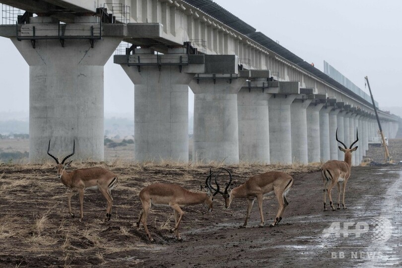 国立公園を横切る鉄道、高架建設着々と ケニア