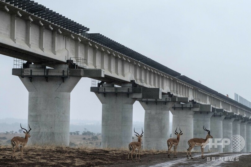 【11月23日 AFP】ケニアの首都ナイロビ郊外のナイロビ国立公園(Nairobi National Park)で、園内を横断する鉄道の高架建設工事が着々と進んでいる。