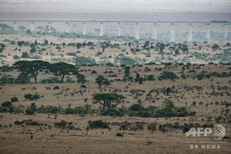 国立公園を横切る鉄道、高架建設着々と ケニア