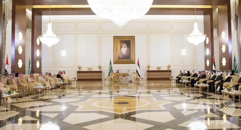 UAEの国営首長国通信(WAM)によると、サルマン皇太子はアブダビ首長国のムハンマド・ビン・ザイド・ナハヤン(Mohammed bin Zayed al-Nahyan)皇太子の出迎えを受けた。