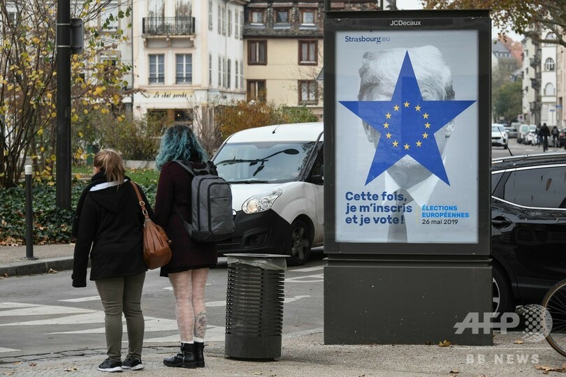 【11月23日 AFP】フランス東部ストラスブール(Strasbourg)で、ドナルド・トランプ(Donald Trump)米大統領とみられる肖像を使った欧州議会(European Parliament)選の投票を呼び掛けるポスターの掲示が始まった。