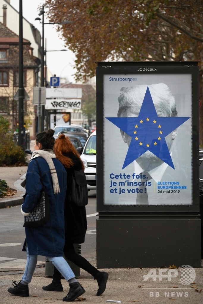 【11月23日 AFP】フランス東部ストラスブール(Strasbourg)で、ドナルド・トランプ(Donald Trump)米大統領とみられる肖像を使った欧州議会(European Parliament)選の投票を呼び掛けるポスターの掲示が始まった。