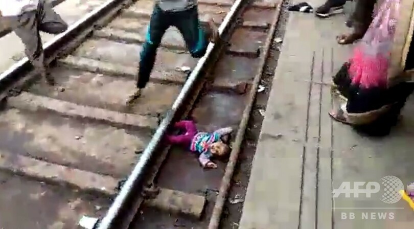 【11月23日 AFP】インドの鉄道駅で、1歳の女児が停車中の列車とプラットホームの隙間に転落し、直後に列車が発車する事故があったが、女児は奇跡的に無傷で難を逃れた。