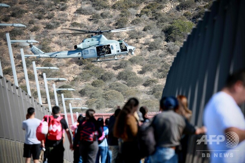 【11月26日 AFP】(更新)米当局は25日、カリフォルニア州南部と国境を接するメキシコ北部の町ティフアナ(Tijuana)から移民数百人がフェンスを乗り越えようとしたことを受けて、国境検問所を一時封鎖したと発表した。