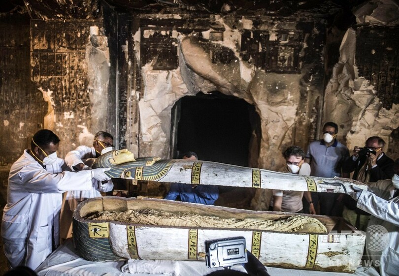 【11月26日 AFP】エジプト考古省は24日、南部ルクソール(Luxor)にある古代都市テーベ(Thebes)の墓地遺跡(ネクロポリス)で新たに発見された墓と、出土した石棺や木棺、副葬品などを公開した。