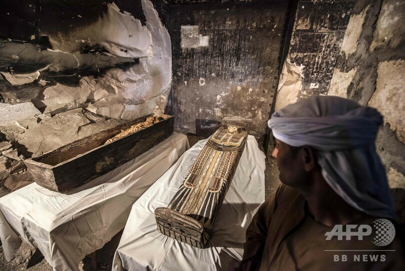 【11月26日 AFP】エジプト考古省は24日、南部ルクソール(Luxor)にある古代都市テーベ(Thebes)の墓地遺跡(ネクロポリス)で新たに発見された墓と、出土した石棺や木棺、副葬品などを公開した。